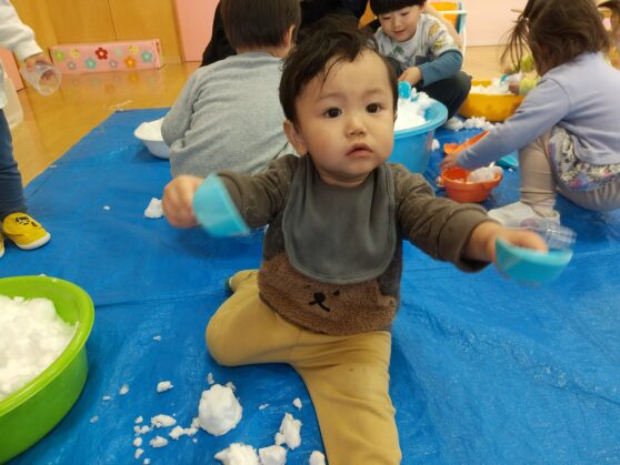 今日はお部屋の中で雪遊びを楽しみました⛄️